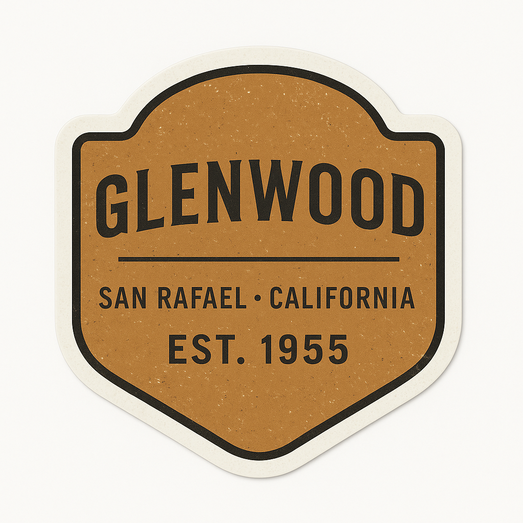 Show your neighborhood pride with this vintage-style Glenwood sticker, celebrating San Rafael’s iconic roots since 1955. The vintage style pays tribute to the history of our community and will look great on just about anything!